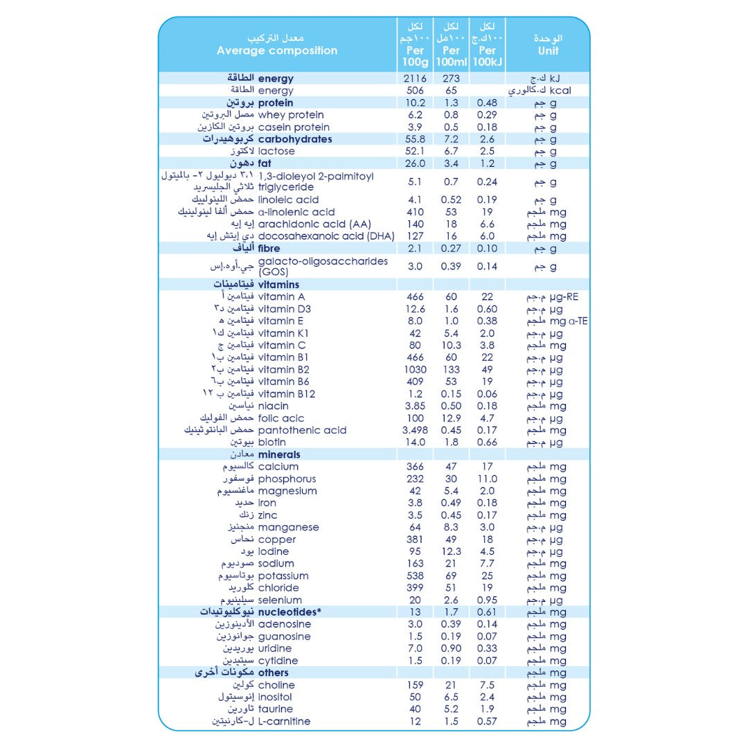 الطعم الكريمي الخفيف يُسهّل على الطفل تقبّل الحليب، ومزيج الدهون الخاص يساعد على توازن الهضم ويخفف من الإمساك.