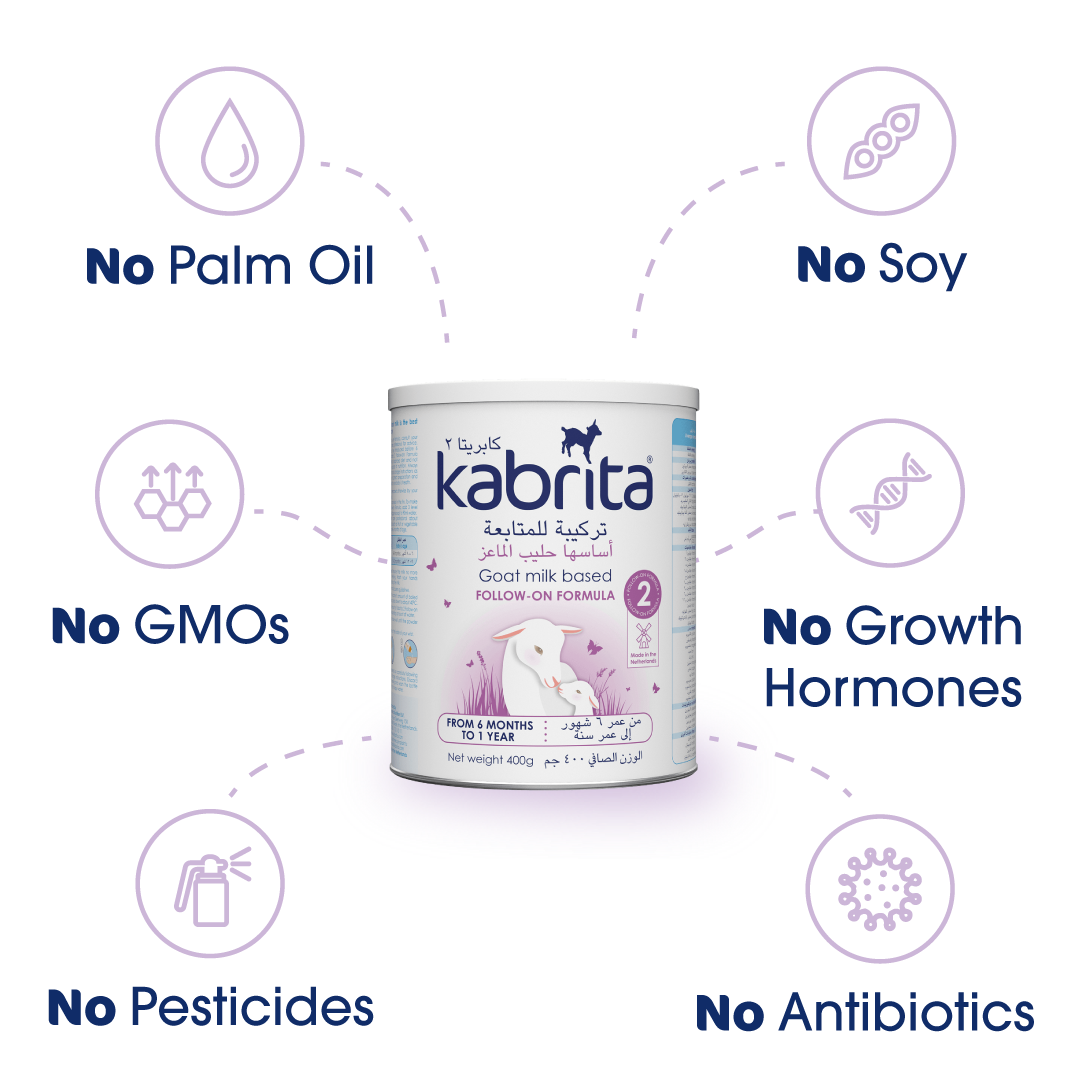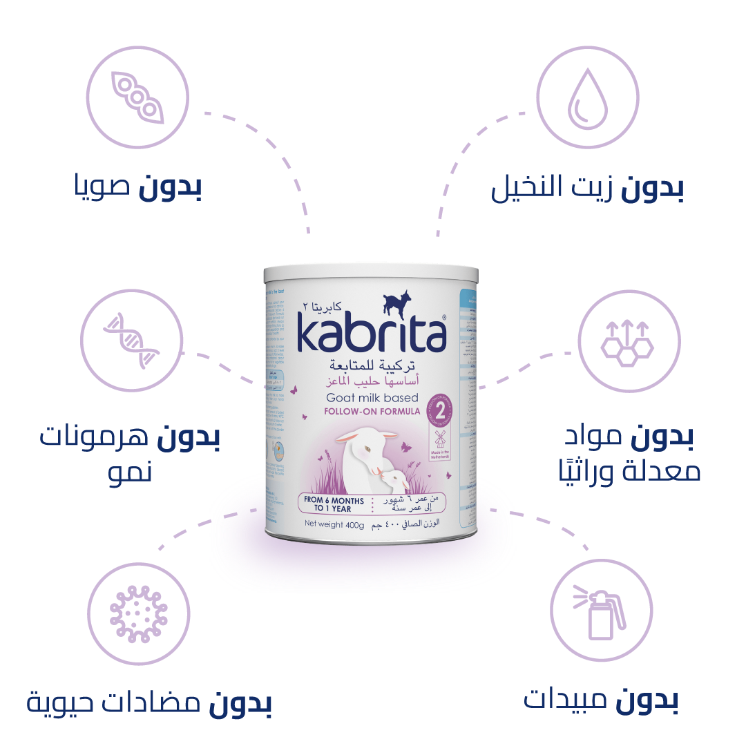 تم تطوير كابريتا المرحلة 2 لدعم احتياجات طفلك الغذائية من عمر 6 إلى 12 شهرًا. يحتوي على حليب الماعز الهولندي الطبيعي الغني ببروتين A2 المعروف بلطافته وسهولة هضمه، مما يجعله خيارًا مثاليًا أثناء فترة التغيير الغذائي. بفضل مزيجه المتوازن من الفيتامينات والمعادن، وطعمه الخفيف، يمنح كابريتا طفلك تغذية مغذية تحبها الأمهات وتقبلها الصغار.