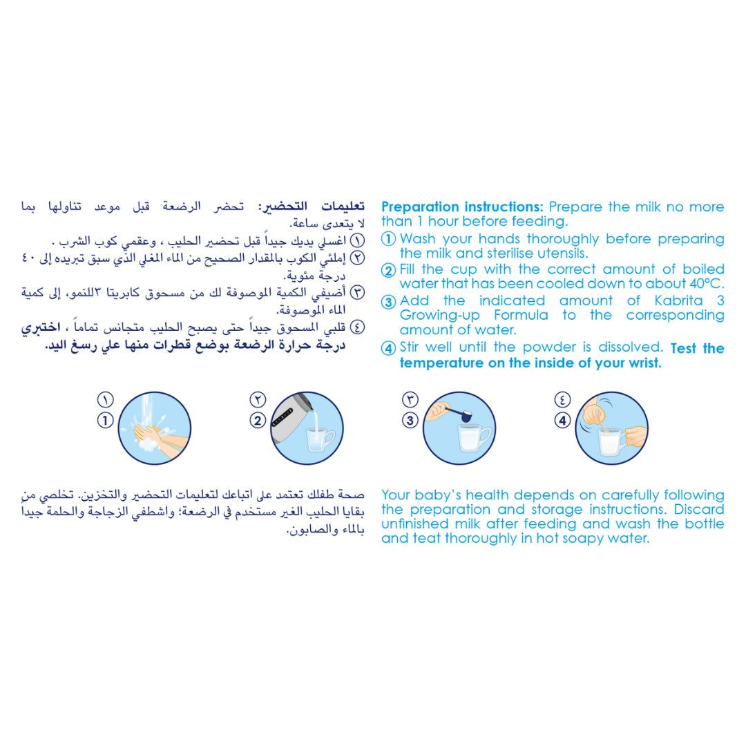 يمكن تحضير حليب الماعز كابريتا وفقًا للتعليمات الموضحة أدناه. يشار دائمًا إلى إعداد الصيغة على العبوة ، وقد يختلف قليلاً بين المنتجات و / أو البلدان. تعتمد صحة طفلك على اتباع تعليمات الإعداد والتخزين بعناية.